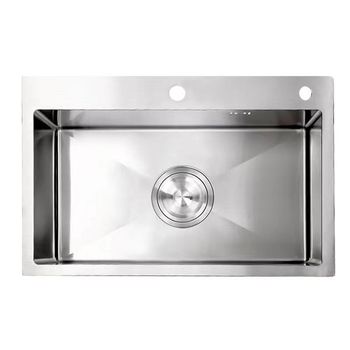 Fregadero de cocina de acero inoxidable de ranura única grande, lavabo cepillado grueso con uno o dos agujeros para verduras y platos